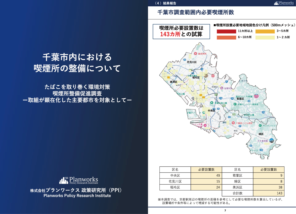 プランワークス政策研究所は、レポート『千葉市内における喫煙所の整備について』を公表しました。